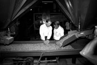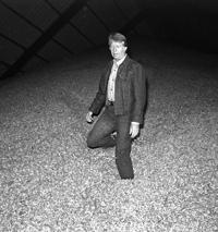 Jimmy Carter stands in a large mound of peanuts at the Carter Peanut Warehouse in Plains, Ga., September 22, 1976. The Democratic party presidential nominee took an early morning walk through the warehouse to inspect some of the harvest. (AP Photo)