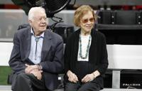 Former President Jimmy Carter and Rosalynn Carter are seen ahead of an NFL football game between the Atlanta Falcons and the Cincinnati Bengals, Sunday, Sept. 30, 2018, in Atlanta. (AP Photo/John Bazemore)