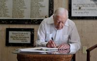 Former President Jimmy Carter signs his name in the guest book at the Jewish Community center in Havana, Cuba, Monday March 28, 2011. Carter arrived in Cuba to discuss economic policies and ways to improve Washington-Havana relations, which are even more tense than usual over the imprisonment of Alan Gross, a U.S. contractor, on the island. C (AP Photo/Adalberto Roque, Pool)