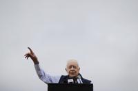 In this Feb. 8, 2017, file photo, former President Jimmy Carter speaks during a ribbon cutting ceremony for a solar panel project on farmland he owns in his hometown of Plains, Ga. (AP Photo/David Goldman, File)