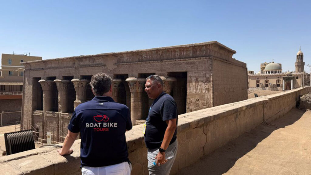 La compañía dice que el recorrido por Egipto es el primero de su tipo y permite a los pasajeros “pedear a lugares que pocos viajeros han visitado antes”, como la meseta de Giza entre las pirámides. En Luxor, los huéspedes cruzan Cisjordania en bicicleta y llegan al Valle de los Reyes y al Templo de Hatshepsut.