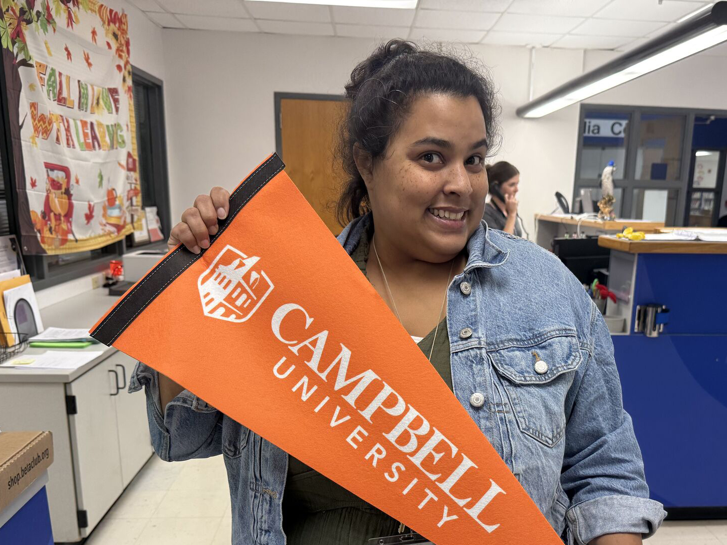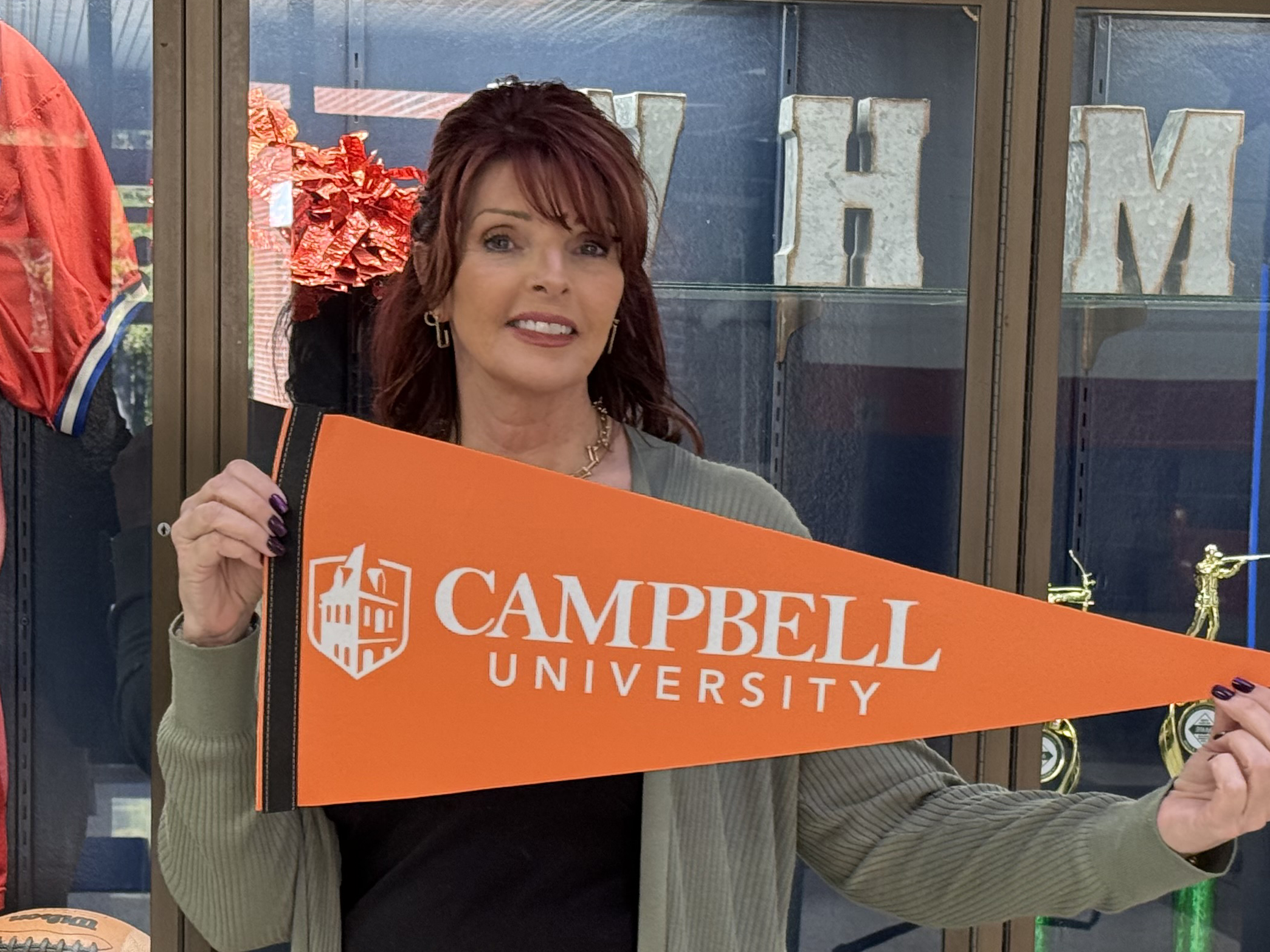 “La reacción general es ‘sorpresa agradable'”, afirma. “Estos son solo banderines. No son como certificados de regalo ni obsequios caros. Pero son exalumnos orgullosos de Campbell que aprecian su alma mater y les encanta la idea de que se les pida que ayuden a promover la escuela y se lo cuenten a sus estudiantes y amigos. Tengo un director en Georgia en este momento que vio mi publicación y quiere que le envíe algo ahora”.