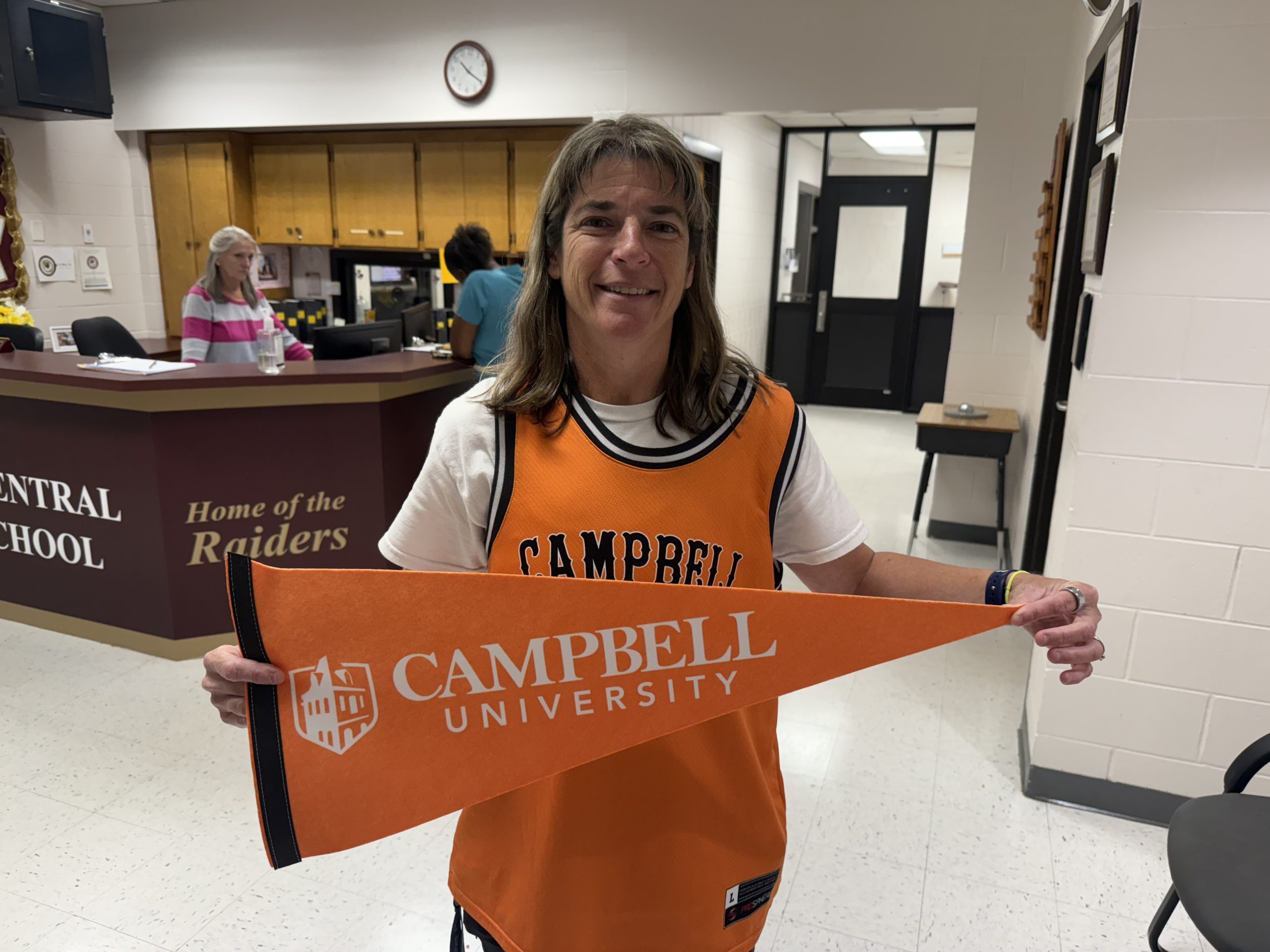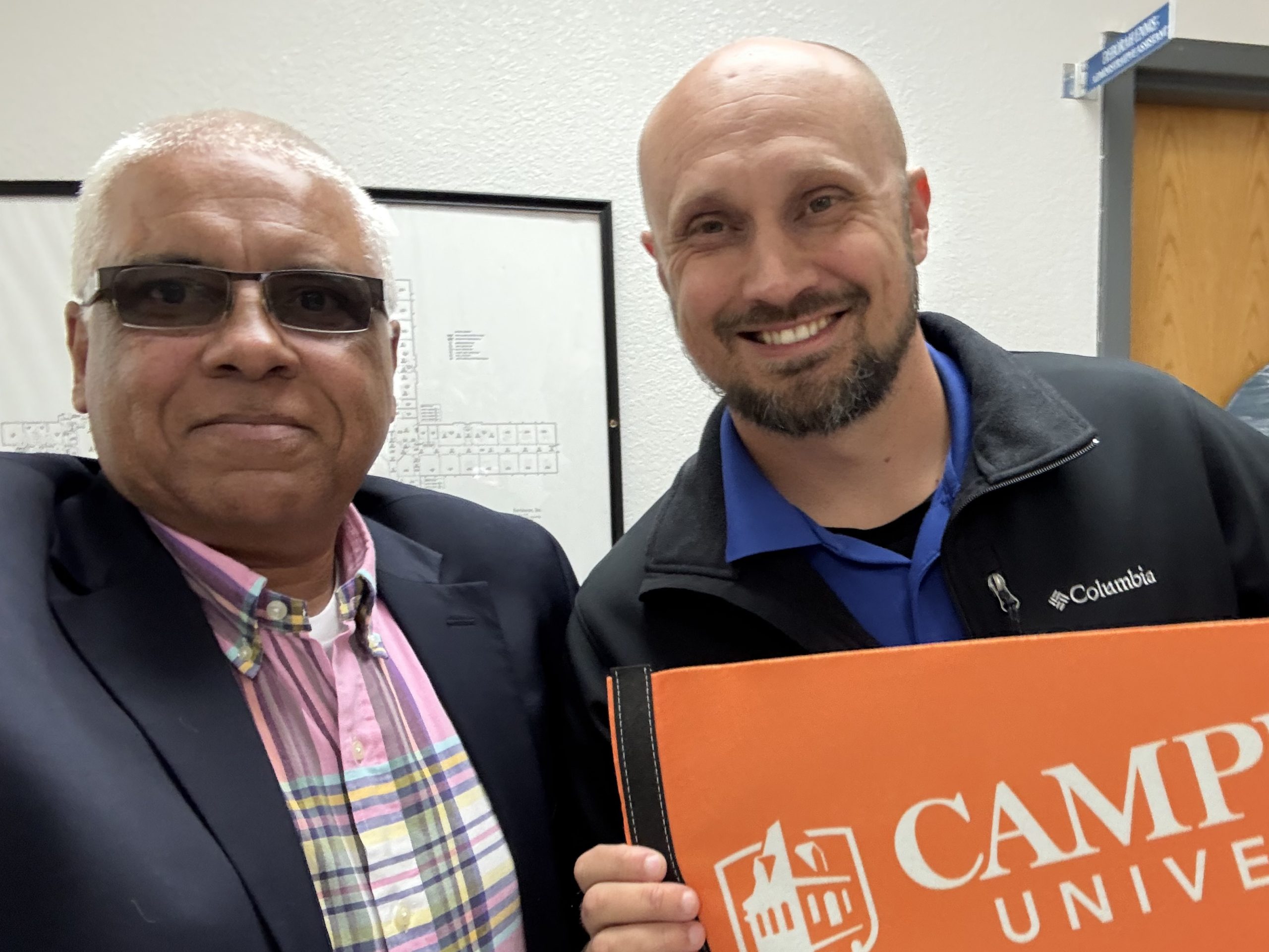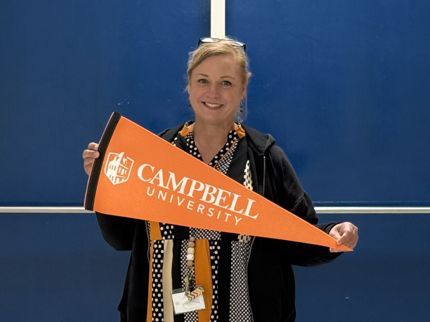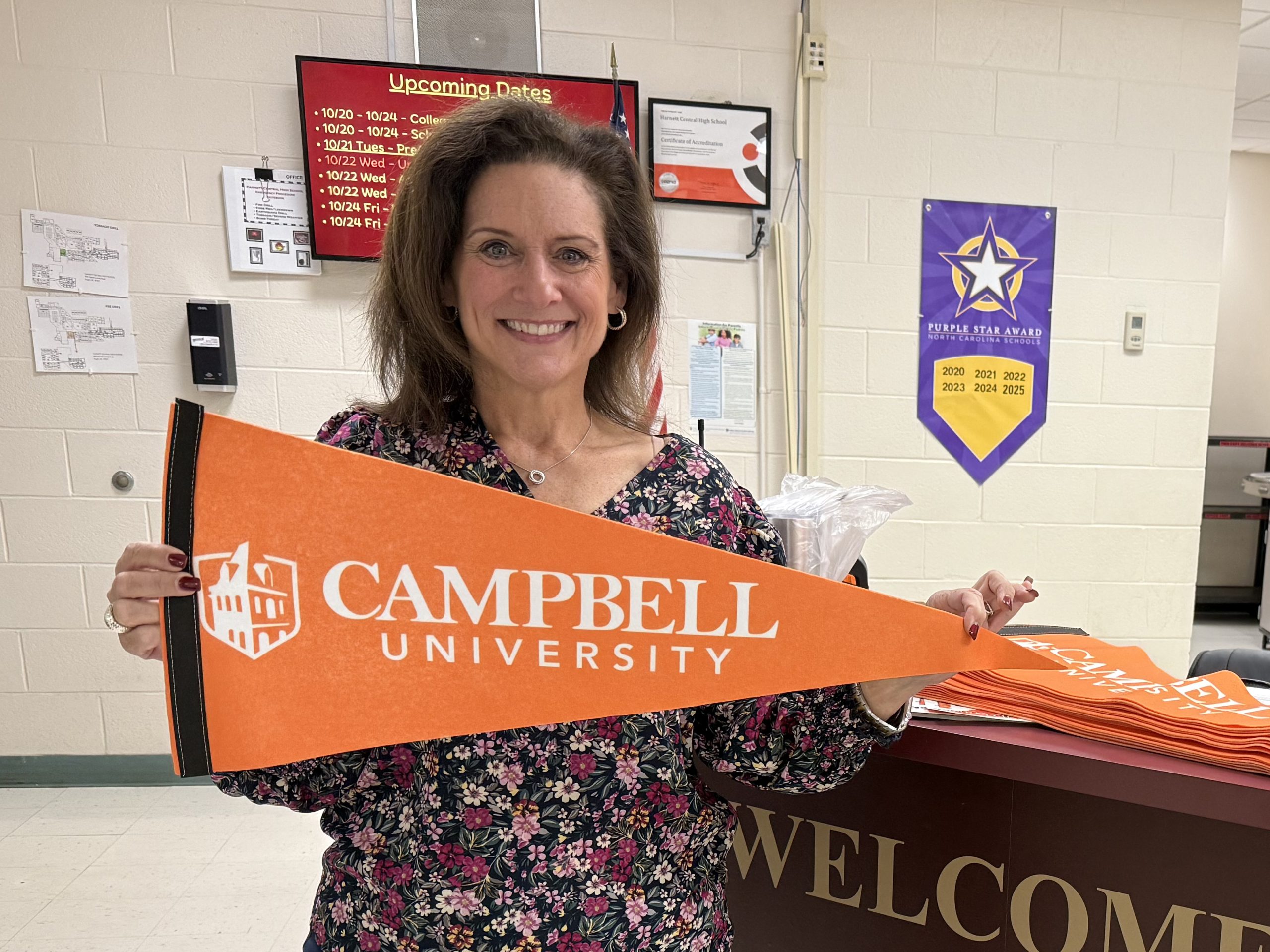 Cuando Dean Clark, vicepresidente de admisiones, se acercó al decano de la escuela, el Dr. Alfred Bryant, para pedirle una caja de repuesto que contenía alrededor de 160 banderines Campbell naranjas, los dos pensaron que sería una buena idea llevarlos a las escuelas intermedias y secundarias del área no solo para resaltar los muchos camellos que enseñan a nivel local, sino también para mostrar la naranja frente a hombres y mujeres jóvenes que están considerando una carrera en la universidad. A principios de este mes, Bryant comenzó a repartir estos banderines a directores, superintendentes y maestros, y comenzó a compartir sus experiencias (y muchas selfies de maestros) en su LinkedIn y otras páginas de redes sociales.