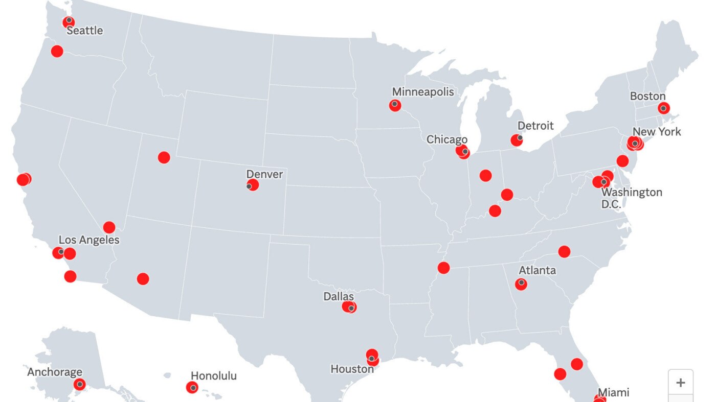 El mapa de arriba muestra 40 aeropuertos que podrían verse afectados por reducciones o cancelaciones de vuelos de la FAA debido al actual cierre del gobierno. Phil Holm/AP Ocultar título