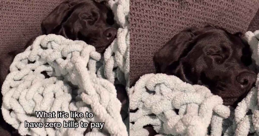 Un labrador negro llamado Jax fue noticia por su enfoque natural hacia la comodidad y la relajación. En este clip, se lo puede ver sentándose en el sofá y usando sus patas delanteras para hundir la manta, preparando el lugar más acogedor para su siesta. La cámara lo capta entonces dormitando, completamente despreocupado, y aparece un título en la pantalla: “Cómo es tener cero billetes”. Según su dueño, Jax “simplemente está viviendo el sueño” y los espectadores no podrían estar más de acuerdo.